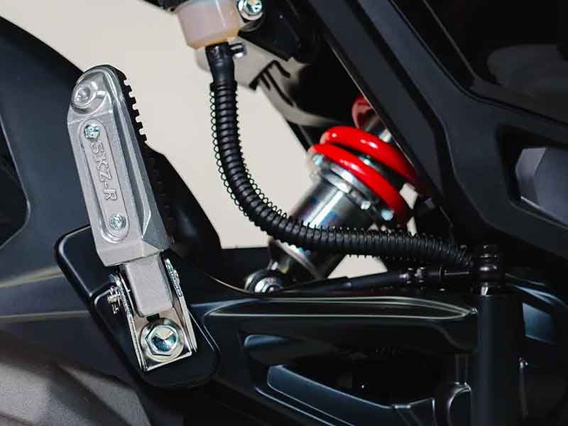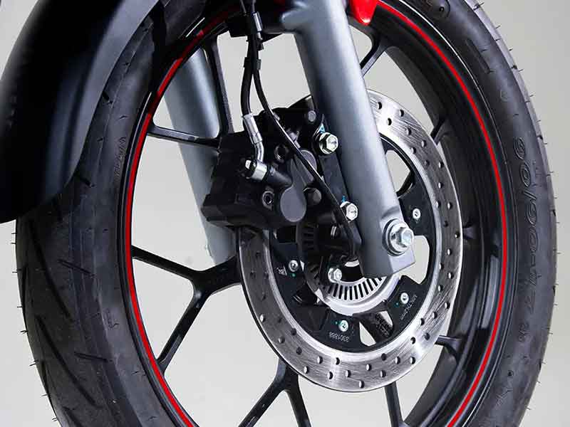 A SBM 150 S conta com garfo telescópico convencional na dianteira e suspensão monoshock na traseira, garantindo absorção eficiente de impactos e estabilidade em qualquer percurso.
